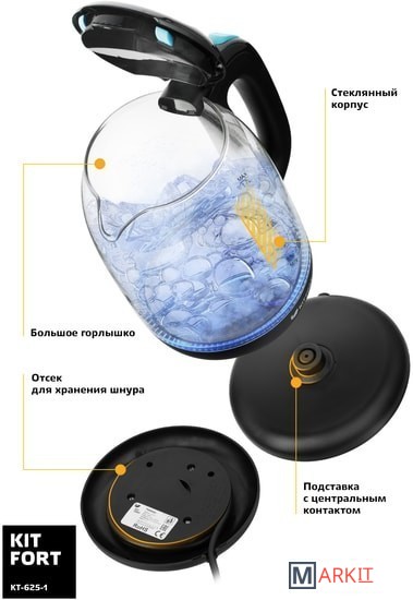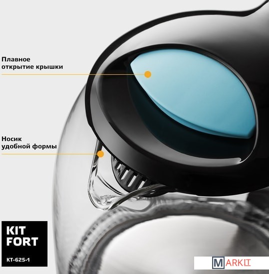 Markit » Электрочайники и термопоты » Электрический чайник Kitfort KT-625-1 (черный/голубой)