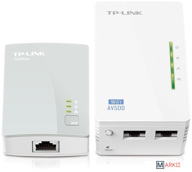 Комплект из двух адаптеров Powerline стандарта AV500 с функцией усилителя беспроводного сигнала до 300 Мбит/с.Особенности:• Кнопка Wi-Fi Clone упростит настройку беспроводной сети и позволит создать надежную единую домашнюю сеть.• Зона покрытия до 300 метров через домашнюю бытовую электросеть• Поддержка протокола IGMP для групповой передачи данных по IP-сетям, оптимизация работы с цифровым телевидением (IPTV).• 128-битное AES-шифрование при нажатии кнопки Pair.